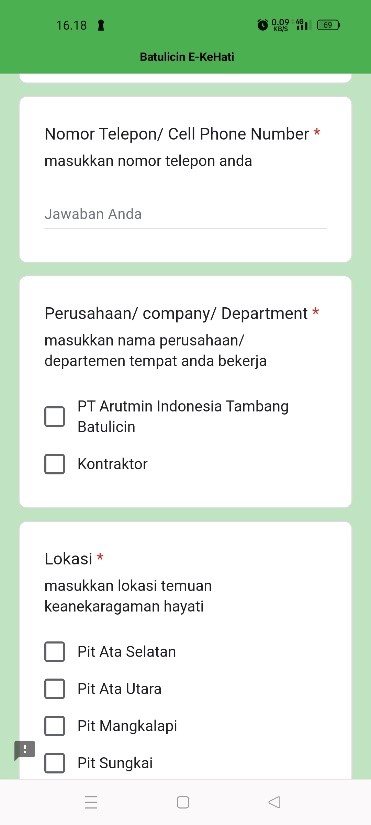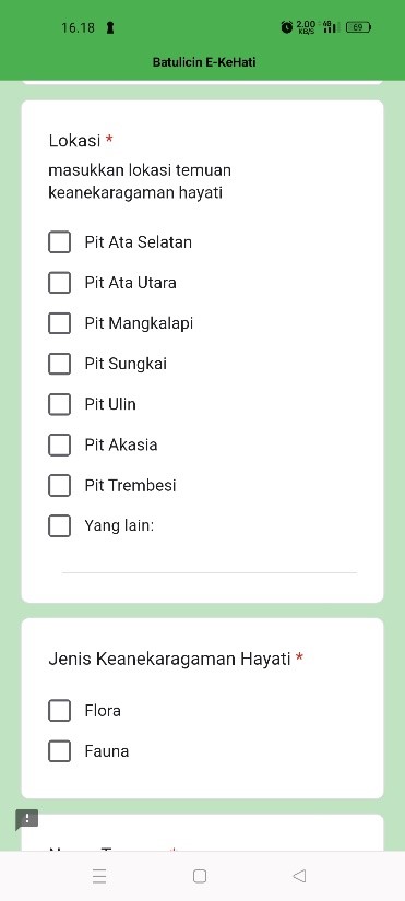PT Arutmin Indonesia Tambang Batulicin meluncurkan aplikasi EKEHATI (Elektronik Batulicin kenanekaragaman Hayati) yaitu sebuah platform yang berfungsi untuk memonitoring keanekaragaman hayati baik flora maupun fauna yang berada dalam area reklamasi. Melalui patform ini karyawan dapat melaporkan apabila menjumpai flora maupun fauna. Platform ini memudahkan masyarakat mengidentifikasi keberadaan hewan langka disekitar mereka maupun di wilayah IUPK Tambang Batulicin.